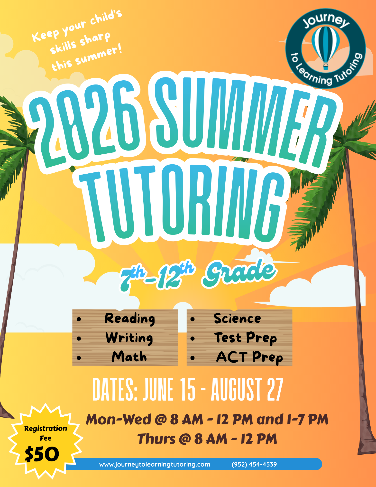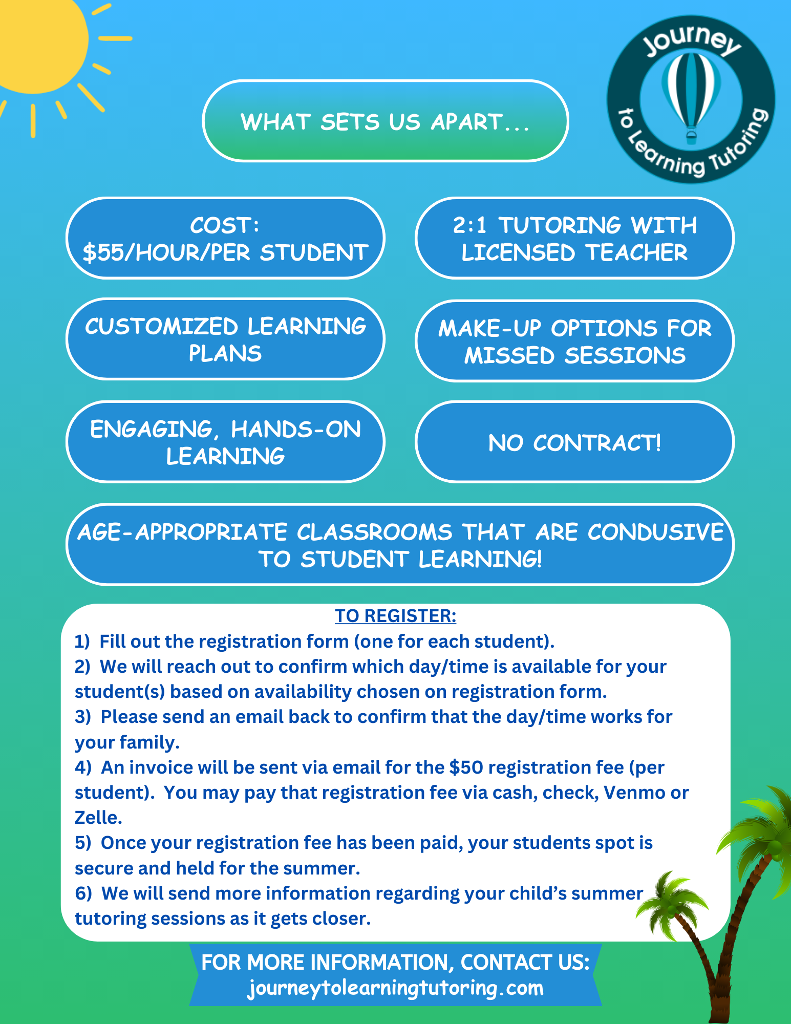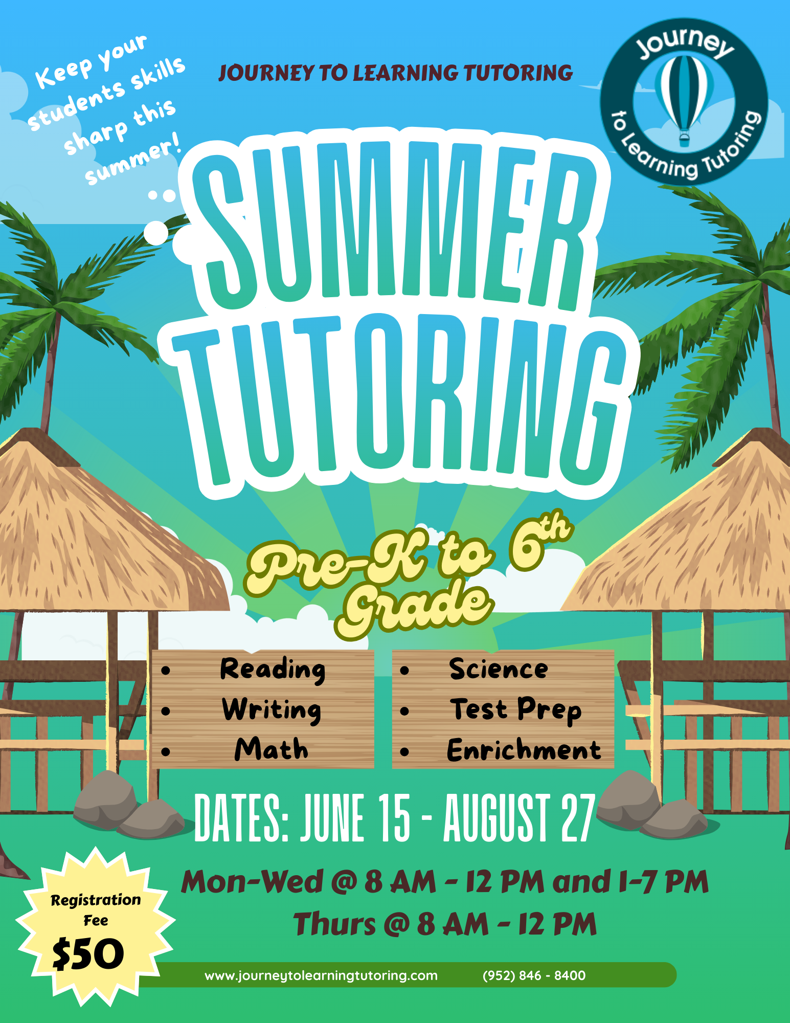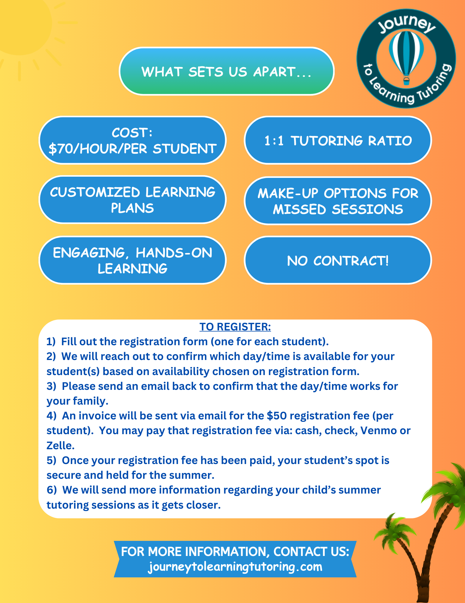 A $50 non-refundable registration fee (per student) is required to reserve your student’s summer tutoring spot.