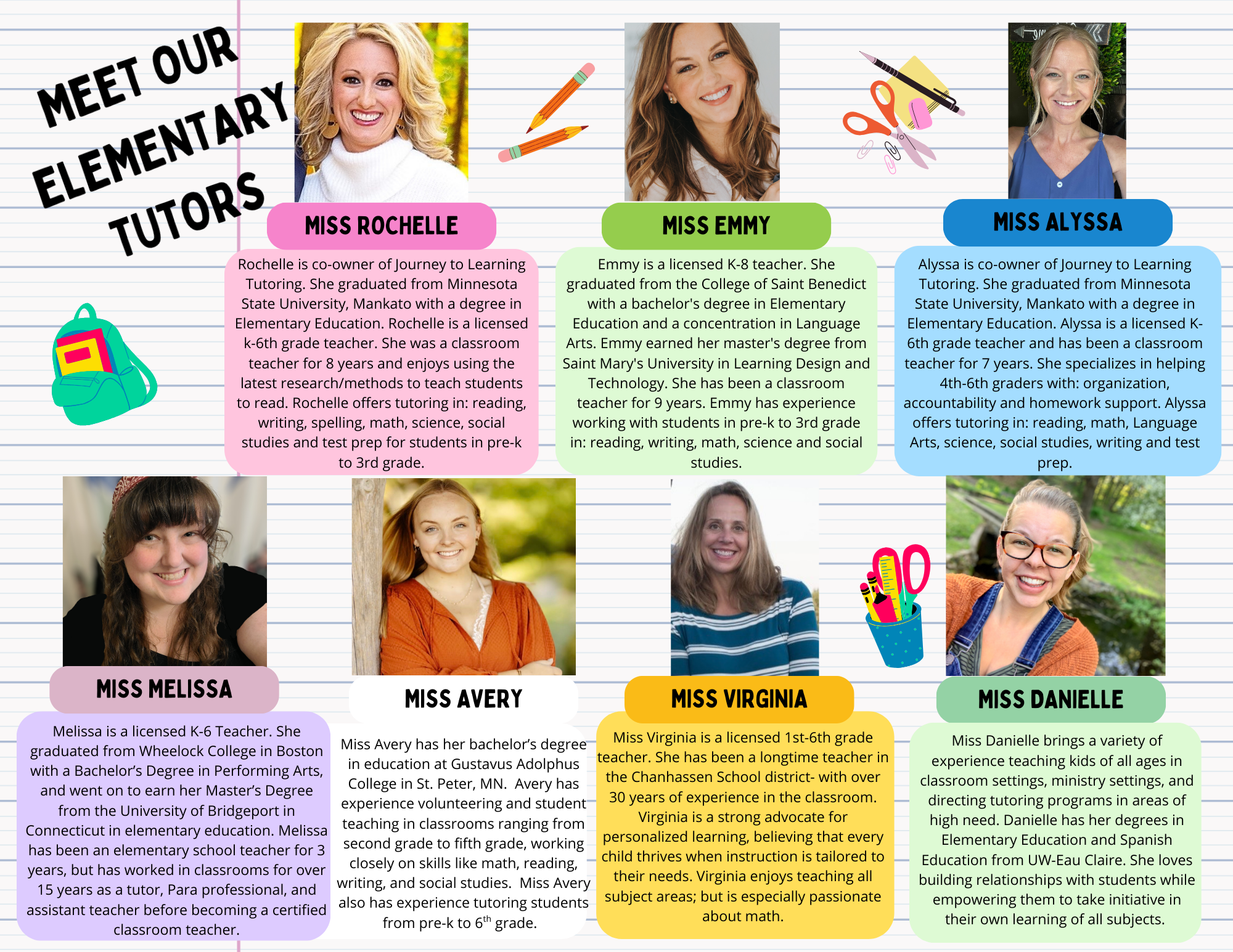 Pre-K - Grade 6 Tutoring: $55/Hour per student (2:1 tutoring with licensed teacher)